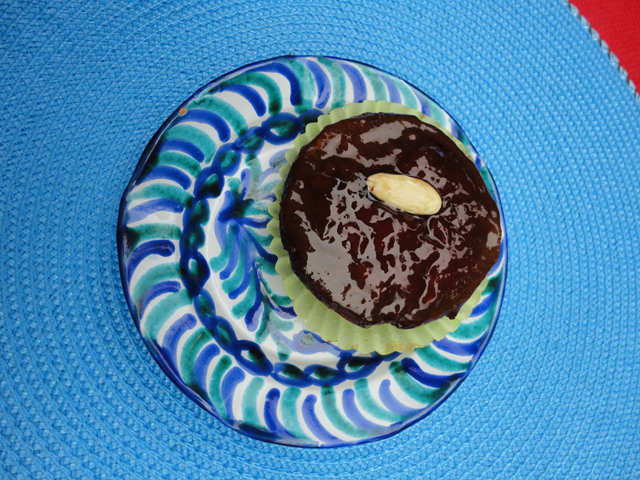 When perfectly cold, mask these cakes with a chocolate glace, placing on the centre of each, as the glace is setting, a square of any stifF, highly-coloured jelly, with a blanched nut of any kind fixed in this, and use plain or in tiny paper cases. (These add enormously to the yalue of such trifles, and cost but little if bought in quantities.)