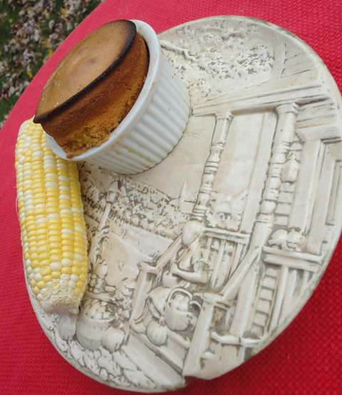 Corn Meal Souffle/ Soufflet di Farina (with eggs, butter, milk; flavored with lemon rind)