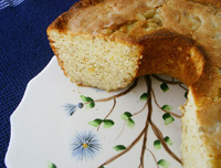 Notes This is a wonderful cake that is very popular in Northern Italy. There are dozens of variations -- some cooks add vanilla extract, others include lemon juice, and many others don't roast the almonds, nor do they use milk. I love roasted almonds so I generally substitute "blanched" ground almonds with roasted almonds. I find that store-bought blanched ground almonds are tasteless at best, and bitter at worst. I prefer to roast my almonds whole and then grind them with an electric chopper. Also, I find that if milk is not part of a coffee cake mix one has to use a lot more butter which is not in itself a bad thing but I prefer not to do so. In any case the combination of almonds, lemon zest and pine nuts is exceptionally good -- that's the good news. The bad news is that the ingredients for this cake are rather expensive, so if the cake doesn't rise or cook well, one will have wasted a fair amount of money for nothing. So one has to make sure that the batter is just right prior to it being put in the oven, but that requires some experience, I suppose. One more thing -- as far as I know most people don't soak pine nuts in water prior to using them, however, whenever I used pine nuts that had Not been soaked in water I found that they ended up burnt and tasting awful. So I decided to soak them in water for this recipe (After all Chinese cooks soak their bamboo sticks in water prior to using them to avoid them from getting burnt, so I figured the same trick might work for pine nuts and happily it did!). The cake I made with this recipe came out quite well -- the pine nuts that had been soaked in water and were used to decorate the top of the cake did not burn and tasted O.K. (Pine nuts don't have a strong flavor, but if they burn, they sure do get in the way of every other flavor). In any case this cake is rather easy to do and if it comes out O.K. guests will love it.... Photo: Mary Melfi. |