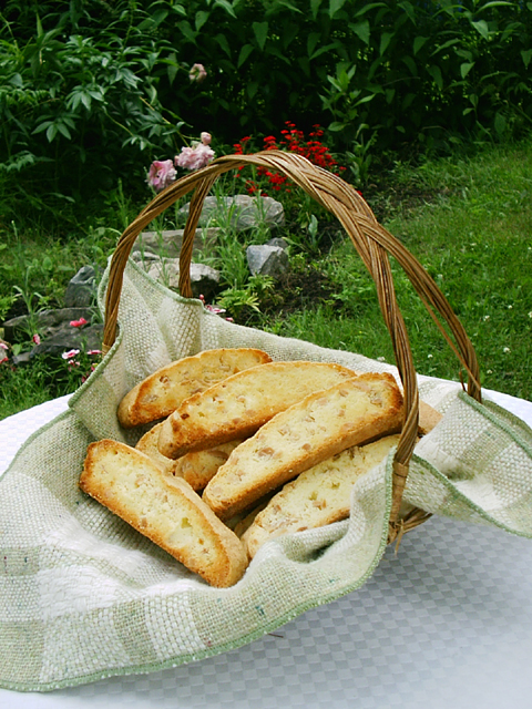 Notes If "biscotti con mennole" (or in perfect Molisani dialect: Biscot' ci mennol" which in Italian would be "biscotti con Mandarole" aren't Molise's most famous cookies, but they should be. If done well, these cookies will surpass in flavor any store-bought biscotti on the market, including those whose flavors are enhanced with artificial ingredients that no one can pronounce. O.K., that's just my opinion and my opinion is somewhat influenced by my childhood experiences (That blessed state!). Still, Molisani soft-style biscotti are superior in taste (in my opinion) to the now world-famous Tuscan biscotti which are often as hard as nails, and are bland to boot. If one likes jaw-breakers, then store-bought cantuccini can pass the taste-test, but if one prefers a softer, gentler style of biscotti one might consider investigating the various recipes on the internet for Molisani-style biscotti. As far back as I can remember "biscotti con mennole" were just that, "biscotti con mennole" -- biscotti with almonds. Now, it turns out there is no such word as "mennole" (at least not on the world-wide web's Italian dictionaries). The Italian word for almond is "mandorle" so it's likely that these biscotti are now known in Molise as "biscotti di mandorli." The under 30 crowd may never have heard of "biscotti con mennole." Recently, a visitor to this site brought to my attention that this style of biscotti was known in some areas of Molise as "mpepitelli" (or "peppatella"). This is a new word for me, and one I have problems pronouncing, let alone associating with my favorite cookie of all time. I suspect though that "peppatella" is not this style of cookie, but rather those made with honey (Recipes for honey biscotti are also available on this website.). In my family, that's including the Melfis, Alfieris, Romanos and Nemeths, this style of cookie has only one name and its, "Nonna Giovanna's biscotti." That's not how I think of them, but as my mother has more grandchildren than daughters, the majority rules (at least, when naming a cookie)......... Apparently, prior to World War II, "biscotti con mennole" were only made in the Molisani countryside for special occasions, but unlike other cookies which were limited to major life celebrations, like weddings and baptisms, these cookies were also made for minor social events -- like entertaining Sunday visitors. Back then making any kind of cookies required a great deal of effort, not only because there were no electric appliances on hand, but also because no one owned ovens, so the batter had to be brought to the local communal wood-burning oven to cook. As one had to pre-book the communal oven to bake one's cookies, one had to plan ahead. In the 1930s no one living in the Molisani countryside -- Why not even the rich! -- had cookies on hand in their homes at all times. Sweets were reserved for celebrations, not for munching (Nuts, lupini, olives etc. were kept for that). Back then one couldn't buy pre-packaged cookies in the shops, one had no choice but to bake them (A lot of trouble then, and still a lot of trouble now). Apparently, candies were available in the shops but they didn't come pre-packaged (Though they did sell candies that were individually wrapped) -- the storekeeper scooped out the amount required etc. As previously noted, cookies were only made to offer to guests, and were not made for one's own pleasure. The favored treat in the 1930s seems to have been "pizza fritta," fried pizza dough, not necessarily because people liked it more than cookies (They didn't) but because it was the easiest to make and by far the cheapest to do as well. When a mother made her bread dough, she often set aside a bit of the risen yeast dough to fry. After frying the yeast dough, she sprinkled it with sugar and possibly cinnamon, and gave it to her children. "Pizza fritta" was loved not only because it was cheap, but also because one could cook it at home -- one didn't have to take the trouble of bringing it to the communal oven. So, it was the one sweet anyone could have any old time (Sugar-glazed nuts could also be done at home, but generally that treat was kept for special events). Well, not exactly "any old time" -- bread (depending on the size of the family) was not made "any old time," it was generally made every two weeks. So obviously kids had to wait around for awhile before they got to savor their "pizza fritta." In fact, the poorest of the poor didn't make "pizza fritta" "any old time" at all, they generally only made it for some special holiday. Sugar was very expensive in the 1930s, so it was rationed. Nonetheless, for major life celebrations everyone, even the poorest of the poor, made biscotti. Luckily, those Italians who immigrated to North America in the 1950s did not have to wait around for very special occasions to make their beloved sweets as on this continent flour and sugar were relatively inexpensive. Nonetheless, in the early years Italian immigrants didn't make cookies for everyday consumption -- they reserved their home-made biscotti for Sunday visitors. For everyday consumption, store-bought pre-packaged Italian cookies which could be had by the truckload, were good enough. By the late 1960s most Italian-Canadians started making biscotti any old time they felt like it -- they were no longer reserved for Sunday visitors. Almond biscotti certainly became ever-present in the Melfi household. In the 1960s home-made cookies (other than biscotti) were generally kept for major life celebrations like weddings, baptisms and confirmations. Later, in the 1970s, new recipes were learned from neighbors and co-workers from other regions of Italy and suddenly a melange of home-made cookies appeared when visitors dropped by (and/or "any old time"). In any case, everyone in my family, including my great nieces and nephews, grew up on my mother's "biscotti con mennole" and love them perhaps a wee bit too much........... P.S. My mother keeps changing