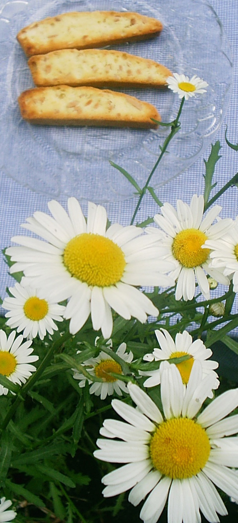 As my mother never measured her ingredients when she made her biscotti and in fact, changed the measurements each time she did them, it was difficult for me to make her recipe (For her recipe see, "Nonna Giovanna's Biscotti con Mennole"). I came up with my own version -- not to improve on my mother's recipe, but simply to make it a little easier to do. Recently, I tried out my friend's (Micheline Di Gerolomo) mother's recipe for this style of Molisani biscotti and I have to admit I liked it a lot (Her recipe is Version II). I liked it so much, I included it in this entry.... Making biscotti, whether Tuscan style or Molisani style, is challenging to say the least. So many things can go wrong (And do go wrong!) -- the biscotti can burn or under-cook, or break up while slicing. Still, most of the time, with a little patience and tender-loving care, most biscotti come out tasting O.K.. Whether they come out looking picture-perfect, well that's another story. If one is not successful, often the problem is unrelated to one's baking skills (or lack of skills) but rather the problem lies with the equipment one is using. For example, some type of baking pans (Take the "non-stick" dark colored ones) don't do their job properly -- they inevitably make stuff burn. Glass ovenware is much better, but it's hard to find the right size to make biscotti in. Also, some ovens are better suited for baking than others. Most home cooks figure out what works, and stick with it.... Biscotti Molisana are supposed to be long and thick -- ideally about 6 1/2 inches long, 1 1/4 inch high and 1/2 inch thick. Tuscan style biscotti are half the size. Biscotti Molisana, unlike Tuscan biscotti, are expected to be on the soft side -- crispy, yes, but not hard (Definitely not jawbreakers as are Tuscan biscotti!). Molisani biscotti should be good on their own -- they don't have to be dunked in coffee or tea, though they are very good when they are dunked. If one grew up with this style of biscotti and liked them as a child, one can't help but love them as an adult. If one is new to this style of biscotti, well, one simply has to try out a recipe and judge for oneself. Comments and photo: Mary Melfi. |