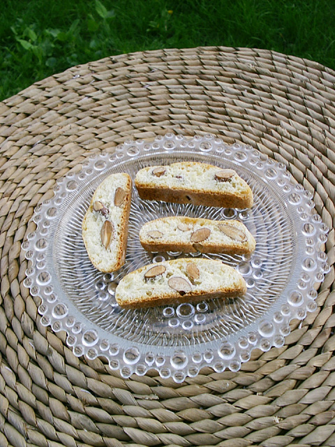 This recipe uses the same proportions as used for "Madeleine's Hazelnut Cantuccini." In fact, this recipe according to Madeleine is so versatile that it can take 2 cups of whatever one likes -- one can mix almonds, hazelnuts and/or any other kind of nut. One could also mix in currants or raisins to the mixture (but whatever one uses, the entire amount has to remain at 2 cups). The cookies shown in this entry were made by Madeleine; the photo was taken by Mary Melfi. |