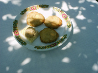 Directions "Skin and dry the almonds,then chop them very fine. Mix the sugar and the whites of egg and stir for about half an hour, then add the almonds to form a rather hard paste. Of this make little balls, as large as a small walnut. If the paste is too soft add a little butter, if too hard add a little white of egg, this time beaten. Were it desired to give the macaroons a brownish color, mix with the paste a little burnt sugar. As you form the little ball, that you will flatten to the thickness of one third of an inch, put them over wafers or on pieces of paper or in a baking tin greased with butter and sprinkled with half flour and half powdered sugar. Dispose them at a certain distance from one another as they will enlarge and swell, remaining empty inside. Bake in an oven moderately hot." Notes This recipe was taken from "The Italian Cook Book: the Art of Eating Well, Practical Recipes of the Italian Cuisine" by Mrs. Maria Gentile. It was published in the U.S. in 1919. For the entire copyright-free cookbook see www.archive.org........ P.S. Nowadays "macaroons" and "amaretti" tend to be seen as two different types of cookies. "Macaroons" are generally made with egg whites and sweet almonds and "amaretti" include whole eggs and are flavored with the essence of bitter almonds. When Gentile's book was published in 1919 the words seemed to be used interchangeably. The author described this recipe with the two words -- "macaroon" and "amaretti" but the word, macaroon, was printed in the larger font. If someone were publishing the book today, very likely, the word, amaretti would be in larger font. Also, in this day and age, not many North American shops sell "bitter almonds." Most home cooks use bitter almond extract. Luckily, after an arduous search I found a Middle Eastern grocery shop in Montreal (Akhavan) that did sell bitter almonds (an Iranian export). Using the real thing gave the cookies a wonderful flavor (Surprisingly, "skinning" the almonds was quite easy to do). Half the amount of bitter almonds suggested in this recipe might have been more than enough as the cookies were a touch too bitter. In addition, the cookie paste spread out too much (Should have been thicker, I guess) so the end result was not all that pretty, but the cookies tasted real good.... Photo and notes: Mary Melfi. |