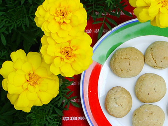 Notes In Molise this recipe was considered a poor man's version of amaretti cookies, because the recipe was less expensive to make than traditional amaretti cookies which use almost no flour, and lots of expensive almonds. In a recent conversation Zia Rosina Melfi (aunt to Pauline Fresco and Mary Melfi) noted that in Casacalenda, Molise most people were able to use natural "bitter" almonds rather than artificial "bitter" almond extract as the bitter almonds grew locally (Her own father had a tree on his property of bitter almonds). Zia Rosina Melfi noted that she switched to using "bitter" almond extract when she arrived in Canada, as in the 1960s shops did not sell natural bitter almonds. Also, Zia Rosina Melfi mentioned that she sometimes adds a touch more flour than her original recipe calls for. It all depends on the actual size of the eggs -- "large" is not necessarily "large" despite what it says on the packaging. So when the eggs are larger than usual, she does add about 1/2 cup more flour to the dough. Also, she noted that it is very important to allow the dough to rest in the fridge for at least 2 hours, or better yet, overnight, as this will harden the dough, and make it easier to shape the dough into balls.... The "amaretti dei poveri" shown in this entry were made by Rosina Melfi and they were photographed by Mary Melfi who had the good fortune of tasting her wonderful cookies, but who had the misfortune of misunderstanding her recipe directions, having assumed her directions for "almond extract," meant, "sweet almond extract," when it had actually meant "bitter" almond extract. A big mistake. Apologies to the cook. Comments and photo: Mary Melfi. |