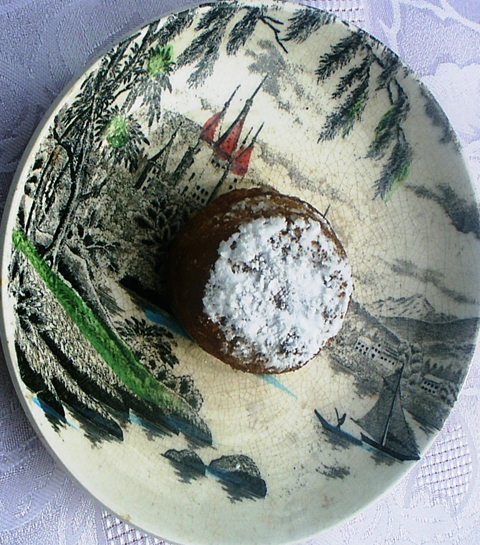 Remove, cool, sandwich two rounds together with honey, dust each sandwich with confectioners' sugar.