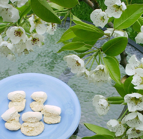 Notes The cookies shown in this entry were made by Franca Cucuzzella. Franca noted that when her grandmother was growing up in the 1920s in Cattolica Eraclea, Agringento, these cookies were only made for weddings. Prior to World War II these cookies would have been extremely expensive to make. Nowadays, various recipes for muscardini include all kinds of ingredients and flavorings but back in the 1920s these cookies only used eggs, sugar, flour and baking powder. In some other parts of Sicily muscardini cookies (according to some Internet cooking sites) are done for The Feast Day of the Dead (November 2nd). However, in Cattolica Eracles this is not the case. In this town the traditional dessert served on The Feast Day of the Dead (or All Souls' Day) is called "Frutti di Zucchero," fruits of sugar. As its name suggests these treats come in the shape of fruits. Often these almond-based, fruit-shaped cookies (or pastries) are displayed on a bed of fresh fruit. When this is done the delicacy is then called "fruitti marturaiu." Prior to World War II not everyone in the town could make (or buy) this expensive dessert on The Feast Day of the Dead. However, those that did make it, would present the dessert to a family who had lost a loved one. The dessert would be given in remembrance of the person who had passed away. Generally, the dessert was brought to the family in the morning, and was not eaten till the evening. The "fruitti marturaiu" would be placed on display during the day, and only be consumed at night. Often, the one who had made the dessert would return and visit the family and enjoy the fruits of her labor.... Photo: Mary Melfi. |