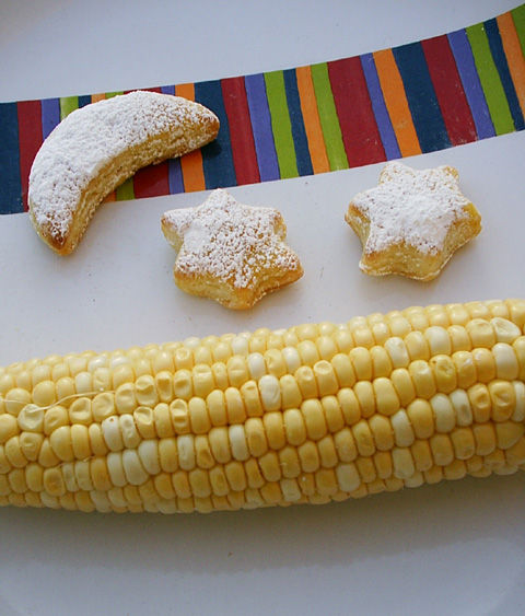 Mix the corn and the wheat flour together.