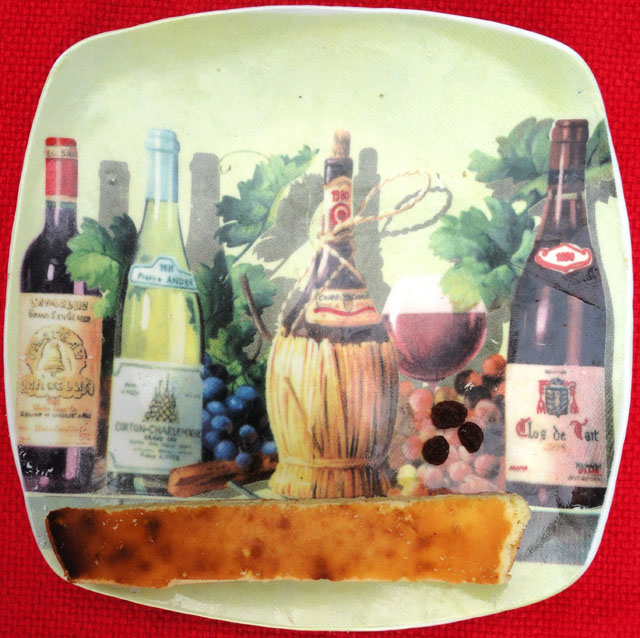 Add the raisins, the candied fruit and 2 spoonfuls of cognac; pour the compound into a smooth, heavy round metal dish smeared with butter and cover it with a veil-like layer of confectionery sugar of flour.