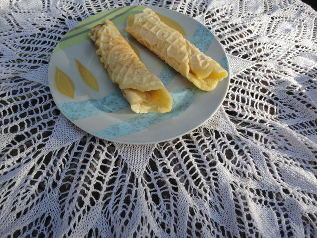 Sweet wafers can be served by themselves, but they're best accompanied with whipped cream or even with milk brule.