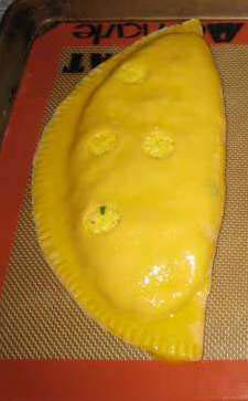 o In the half of the pastry circle that will cover the filling, make three "thimble" size holes.