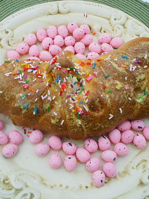 This recipe was taken from "Meals with a Foreign Flair" which was put together by "Better Homes and Gardens" and published by Meredith Press in 1963. For the entire copyright-free cookbook see www.archive.org.... Photo of store-bought Easter bread: Mary Melfi. |