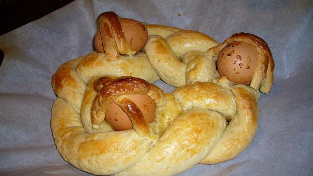 Notes The following text comes from Wikibooks (Machine google translation): The Scarceddhra (or Tart, or scarceddha) is a type of donut that you use to prepare for the EASTER holidays in Puglia. This recipe constitutes one of the possible variants. The following text comes from Wikipedia, the free encyclopedia (Machine google translation). The Tart, known in some areas as scariella, is one of the Easter cakes originating in the cuisine of Puglia known throughout the south and is well prepared in many nations where the rich have spread the recipe. Scarcella Origins Other names Scariella Place of origin Italy Region Puglia Details Category sweet Key Ingredients Shortbread, almond paste, jam of plums, frosting Variants No icing, no almond paste, only pastry with egg.... It's an Easter cake typical of Puglia. Has the form of a wheel (or if we want a donut if translate literally the word scarcella). This is covered with frosting white upon which are perched small eggs in chocolate for decoration or simply of silver or colorful beads. The round shape of the cake in question is rooted in a very remote past. It is believed that the round shape has to do with luck, also, the Tart is a cake that symbolizes the birth of a new life (from which the custom to decorate it with the eggs). Also transmitted the tradition of scarcella decorated with simple eggs boiled (not in hot chocolate) or even hand-painted eggs by housewives themselves almost to witness an artistic vein of the past now lost. The preparation and baking of scarcelle takes place during Holy Week, or even during the week preceding the week in question. It is a sweet perfume which pervaded, and pervades the homes and streets during Easter week mainly because of the use of ' ammonia. Also very popular is the use of the grated rind of lemon in order to donate to a Tart flavor flavored. Preparation There are several variants of Scarcella, each of which requires a different preparation. Elements common to all scarcelle are characteristic pastry of which are being made and decorated with Easter. Moving from country to country, however, is likely to find Scarcelle covered with icing sugar or simply decorated with a boiled egg or even scarcelle stuffed or not stuffed. For scarcelle stuffed, actually more elaborate than not filled, the preparation is as follows: there lies a disc of pastry on a baking sheet, then lies down on this a layer of jam (usually plum ) and a thick layer of a particular almond paste obtained by mixing finely chopped almonds with sugar and eggs, everything is covered with an additional disc of puff pastry and baked in the oven. After cooling, it goes to icing and decoration................. Original Italian text: Da Wikipedia, l'enciclopedia libera. Questa voce sugli argomenti cucina e Puglia solo un abbozzo. La scarcella, conosciuta in alcune zone anche come scariella, uno dei dolci pasquali originari della cucina pugliese conosciuto in tutto il sud ed preparato pure in molte nazioni dove i ricchi ne hanno diffuso la ricetta. Scarcella Origini Altri nomi Scariella Luogo d'origine Italia Regione Puglia Dettagli Categoria dolce Ingredienti principali Pasta frolla, pasta di mandorle, marmellata di prugna, glassa Varianti Senza glassa, senza pasta di mandorle, solo pasta frolla con uovo un dolce pasquale tipicamente pugliese. Ha la forma di una ruota (o se vogliamo di una ciambella se traduciamo letteralmente la parola scarcella). Questa viene ricoperta di glassa bianca su cui poi vengono adagiati dei piccoli ovetti in cioccolata a scopo decorativo o anche semplicemente delle perline color argento o multicolore. La forma rotonda del dolce in questione affonda le sue radici in un passato molto remoto. Si ritiene che la forma tonda abbia attinenza con la fortuna; inoltre, la scarcella un dolce che simboleggia la nascita di una nuova vita (da cui poi l'usanza di decorarla con degli ovetti). Diffusa altres la tradizione della scarcella decorata con semplici uova sode (quindi non in cioccolata) o addirittura uova dipinte a mano dalle massaie stesse quasi a testimoniare una vena artistica di altri tempi oramai perduti. La preparazione e la cottura in forno delle scarcelle avviene durante la Settimana Santa o addirittura durante la settimana precedente quella in questione. Un dolce il cui profumo pervadeva e pervade le case e le strade durante la settimana di Pasqua soprattutto per via dell'uso dell'ammoniaca. Molto popolare inoltre l'uso della scorza grattugiata del limone al fine di donare alla scarcella un sapore piu aromatizzato. Preparazione Esistono diverse varianti della Scarcella, ognuna delle quali richiede una differente preparazione. Elementi comuni a tutte le scarcelle sono la caratteristica pasta frolla di cui sono fatte nonch l'essere decorate con motivi pasquali. Spostandosi da paese a paese, tuttavia, possibile imbattersi in Scarcelle ricoperte di glassa di zucchero o semplicemente decorate con un uovo sodo o ancora scarcelle ripiene o non ripiene. Per le scarcelle ripiene, oggettivamente piu elaborate di quelle non ripiene, la preparazione la seguente: si stende un disco di pasta frolla su una teglia da forno, quindi si stende su questo uno strato di marmellata (solitamente di prugna) ed un abbondante strato di una particolare pasta di mandorle ottenuta mescolando mandorle finemente tritate a zucchero e uova; si ricopre il tutto con un ulteriore disco di pasta frolla e si cuoce in forno. Dopo il raffreddamento, si passa alla glassatura e decorazione. Photo: Wikibooks. |