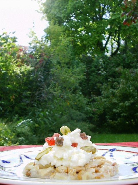Notes This recipe was first published in "The Cook's Decameron: a study in taste, containing over two hundred recipes for Italian dishes," written by Mrs. W.G. Waters and published by William Heineman (1920). For the entire copyright-free cookbook see www.archive.org. P.S. I tried this recipe and followed the directions as best as I could (They are a bit unclear). I found the dessert satisfactory, though not incredibly so. The taste was fine enough, but the texture of the dessert was nothing to crow about. Combining a hard almond cookie base with whipped cream did not work very well, though it did make for a strange and interesting mix.... Photo and notes: Mary Melfi. |
