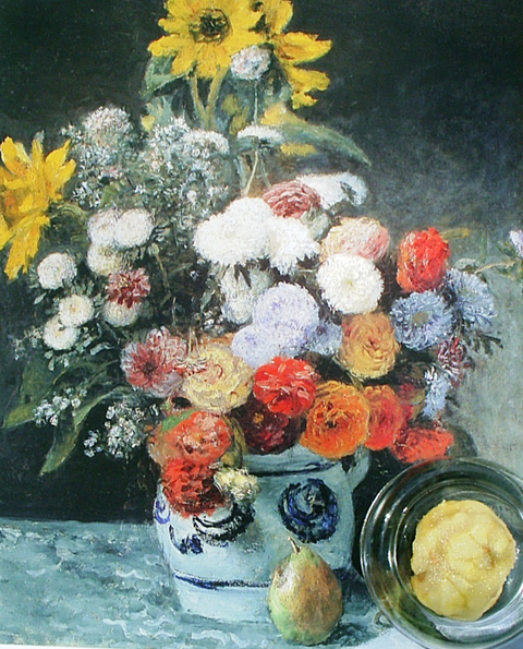 Notes This recipe was taken from "The Complete Italian Cook Book: La Cucina" by Rose L. Sorce. It was published by Grosset & Dunlap in 1953. For the entire copyright-free cookbook see www.archive.org.... Image [behind chestnut] -- Auguste Renoir, Mixed Flowers, 1869. |