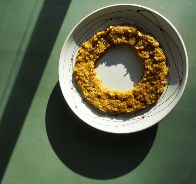Pour the mixture into a mold with a hole in the middle and has been greased.