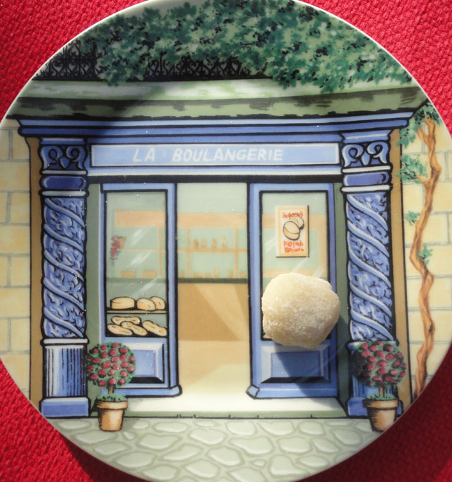 Take a small piece of the almond-sugar-Maraschino mixture and using the moistened palms of your hands shape into a ball.