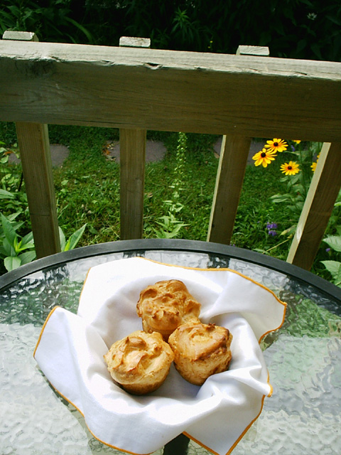 Directions "Boil the water and melt the butter in it. Salt it, add the flour and let it cook a little while. Cool and add the beaten eggs. Form this into 12 bigne (little cakes or cookies) and bake them in the oven. When they are baked split them open and fill with a custard flavored with vanilla and sprinkle them with powdered sugar." Notes This recipe was taken from "Practical Italian Recipes, sold for the Benefit of Italian War Orphans," by Julia Lovejoy Cuniberti. It was published in Washington, D.C. in 1918. For the entire copyright-free cookbook see www.archive.org.... P.S. I tried this recipe and found the result very satisfying. The pastry dough is soft but firm enough to incorporate a pastry stuffing. I baked the bigne in a greased muffin pan first for 10 minutes in a 400 F degree oven and then turned it down to 350 F degrees and continued baking for another 35 minutes. The batter surprisingly, or not so surprisingly considering the amount of eggs involved, tripled in volume and produced a light-tasting pastry. Photo and notes: Mary Melfi. |