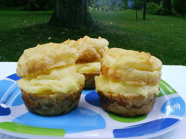 Remove to rack to cool completely. Cut a slit in side of each puff and fill with