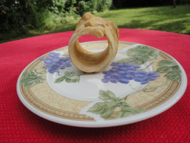 Make some good puff paste, roll it out very thin, and cut it into pieces of an equal size, about two inches wide and eight inches long; place upon each piece a spoonful of jam, wet the edges with the white of egg and fold the paste over twice; slightly press the edges together, that the jam may not escape in the frying, and when all are prepared, fry them in boiling lard until of a nice brown, letting them remain by the side of the fire after they are colored, that the paste may be thoroughly done.