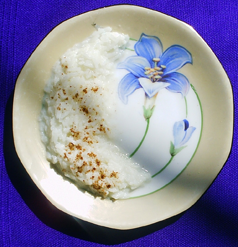 Notes According to my mother no one made rice pudding in Casacalenda prior to World War II. Was she wrong! According to my aunt, Zia Rosina, this dessert was often made for Christmas Eve, St. Joseph Eve and Good Friday. In fact, my aunt's own mother generally did it for St. Joseph Eve. Well, this information really took me by surprise. First of all, I had assumed all these years that rice pudding was an all-American dessert and now find out Southern Italians did it as well, and second of all, I am shocked to learn that prior to World War II not only was St. Joseph's Feast Day celebrated but so was the "Eve" of St. Joseph. Apparently, because this dessert had to be chilled, and because few households in the countryside owned fridges prior to World War II, it was only done in the winter time. Cooks either kept the pudding on their window sills or on their porches. Rice pudding was also made for San Giuseppe's Patrocinio which fell on the 2nd Sunday in May.... One more thing, my aunt says that most cooks used goat's milk to make this pudding in the old days. Back then most people living in the countryside owned a goat or two, and that's why goat's milk was often used to make all sorts of sweets.... Photo: Mary Melfi. |