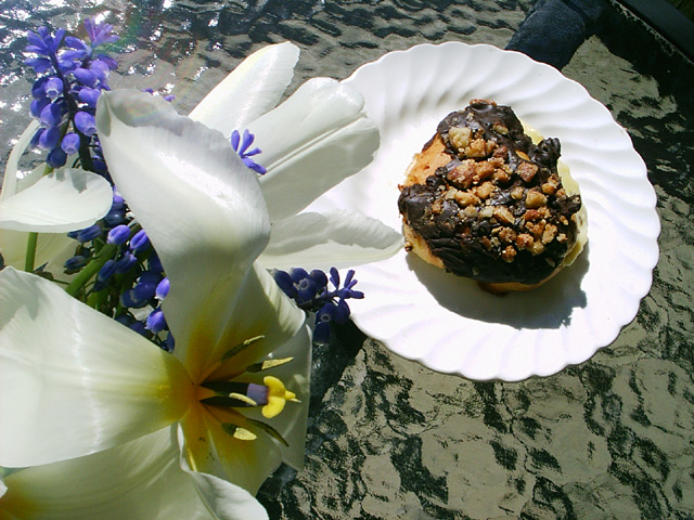 o Sprinkle coarsely chopped roasted almonds over the chocolate frosting.
