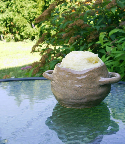 Directions "Take one cup of cold water, and pour one-half of it in a bowl with one tablespoon of starch, stir well until starch is dissolved. Pour the other one-half onto one heaping tablespoon of powered sugar and boil for a few moments -- until sugar is thoroughly dissolved. Allow it to cool, and then add the starch, and one cup of milk, a pinch of salt, a little grated lemon-rind, and two yolks of eggs. Mix all thoroughly, then strain through a sieve, then put on the stove again, and over a moderate fire, stir it constantly, always in the same direction, until it has assumed the thickness you desire." Notes This recipe was taken from "Simple Italian Cookery" written by Antonia Isola (pen name for Mabel Earl McGinnis) and published in English in the United States by Harper and Brothers in 1912. It is believed to be the first American cookbook that contains Italian recipes. For the complete cookbook see www.archive.org.... P.S. This is yet another variant of the famous Italian pastry cream called "creama pastccera." This recipe is relatively easy to follow and the results are satisfactory.Photo: Mary Melfi. |