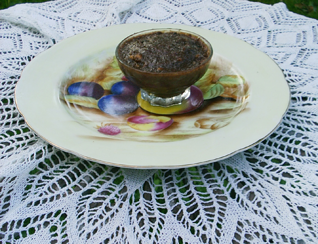 Directions "Make a custard of the eggs, milk, sugar and chocolate. Cook it in a double boiler until it thickens. Take from the fire and add the finely ground macaroons, stirring and beating the mixture until it is smooth. Pour into a buttered mould and chill thoroughly on the ice." Notes This recipe was taken from "Practical Italian Recipes, sold for the Benefit of Italian War Orphans," by Julia Lovejoy Cuniberti. It was published in Washington, D.C. in 1918. For the entire copyright-free cookbook see www.archive.org. A variety of recipes from this cookbook can also be found on this website....P.S. I tried this recipe and found it quite delicious. Actually, I also used the pudding as a nougat filling (Thickened it by adding flour to the mixture) and that worked quite well. Photo: Mary Melfi. |