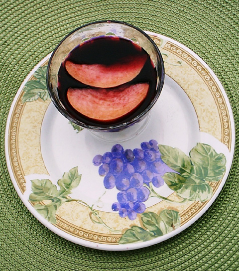 Directions Peel and slice one or two large peaches; place in a dessert glass and cover with your favorite wine.