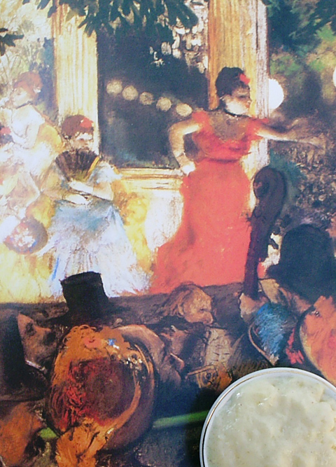 Notes This recipe was taken from "The Complete Italian Cook Book: La Cucina" by Rose L. Sorce. It was published by Grosset & Dunlap in 1953. For the entire copyright-free cookbook see www.archive.org.... Image -- Edgar Degas: Le Cafe concert des Ambassadeurs, 1876-1877. |