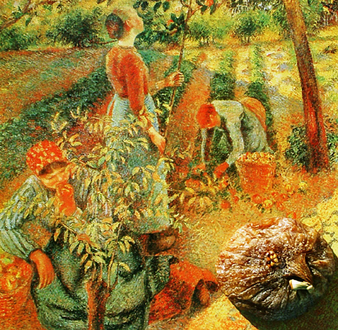 Notes This recipe was taken from "The Complete Italian Cook Book: La Cucina" by Rose L. Sorce. It was published by Grosset & Dunlap in 1953. For the entire copyright-free cookbook see www.archive.org.... Image -- Camille Pissaro: La cuellette des pommes, 1886. |