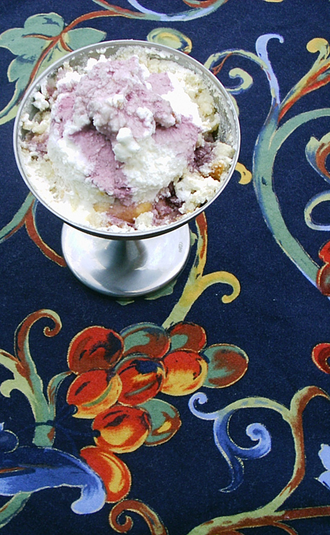 Directions Soak macaroons in wine, and place on the bottom of a shallow bowl.