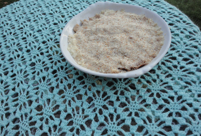Directions Boil eight ounces of breadcrumbs in half a pint of milk.