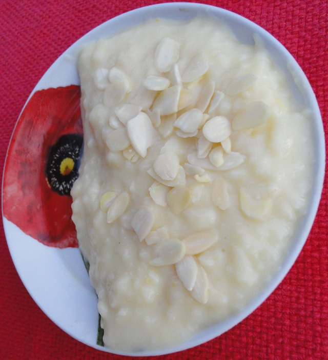 Directions Take eight ounces sweet and two of bitter almonds, put in very hot water, remove the skins and dry in cloth, put in mortar with one white of egg (to prevent the almonds getting oily) when well pounded and reduce to a paste, put in pan with one pint milk and reduced to a paste, put in pan with one pint milk and four ounces powdered sugar nearly boiling; add eight ounces bread crumbs soaked in milk and strained, stir over slow fire for six or seven minutes, remove from fire, when nearly cold, stir well in four yolks of eggs and two whites beaten separately adding two ounces shredded candied citron peel, when all well mixed together, nearly fill a tin well greased with melted butter, place a saucepan lid or saucer at the top of tin either cook in bain marie or put in slack oven for about 30 minutes. Very good and light. Notes The recipe in this entry was taken from the fourth edition of "Recipes of Italian Cookery" translated and arranged by Maria Gironci which was published in 1900 by Gaskill & Webb in London, England.... Photo: Mary Melfi. |