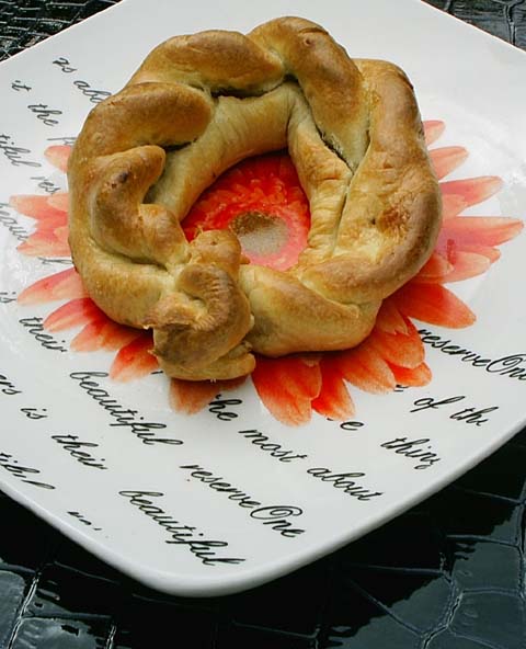 o Shape the folded flat piece of dough into a circle, and intertwine the slits.