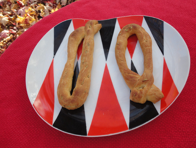 The following text comes from Italian Wikipedia (Machine google translation). "The scaldatelle or scaldatelli (in dialect Foggia, scallatill') are boiled taralli, made with wheat flour, eggs (sometimes), oil, salt and fennel seeds. The product is extremely widespread throughout the South.... Original Italian text: "Scaldatelle Da Wikipedia, l'enciclopedia libera. Scaldatelli cerignolani Le scaldatelle o scaldatelli (in dialetto foggiano: scallat) sono dei taralli bolliti, realizzati con farina di grano, uova (a volte), olio, sale e semi di finocchio. Prodotto estremamente diffuso in tutto il meridione, soprattutto nelle zone tradizionalmente cerealicole. La denominazione maschile tipica della zona del Gargano: sono chiamati scaldatelli nel Manfredoniano e Cerignolano, e scaldatill a Lucera. Preparazione Dopo la lievitazione della pasta, si formano dei cilindri che vengono chiusi sovrapponendone gli estremi; i cilindri vengono buttati in acqua bollente senza sale, poi asciugati e cotti in forno. Oltre al gusto classico possibile trovare varianti alla cipolla, al peperoncino, al pomodoro, alle olive o alle patate...." Photo: Mary Melfi. |