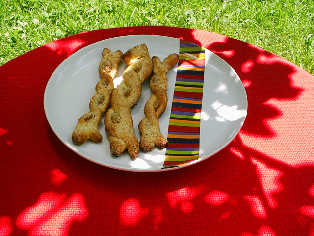 These sweet taralli twists or treccine are easy to make. It's hard to say how traditional or old the recipe is. All one can say for sure is that some Italians in the Puglia region are presently making their treccine in this manner. Italian cooks like cooks everywhere like to experiment with old recipes, and this is one of the results. Photo: by the contributor. |