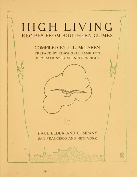 Ingredients Directions Notes "High Living, Recipes from Southern Climes" was compiled by L.L. McLaren. It was published for the benefit of the Telegraph Hill Neighborhood Association in San Francisco by Paul Elder and Company in 1907.For the complete copyright-free cookbook visit www.archive.org. |