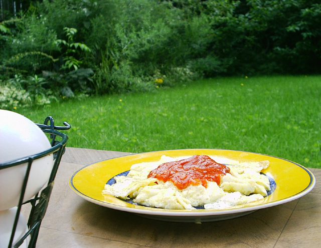 tablespoon of milk or cream, salt and pepper, one tablespoon of grated Parmesan cheese, and a little chopped-up parsley. With this make three or four