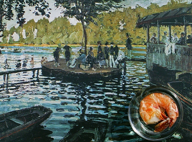 This recipe was first published in "The Italian Cookbook, 160 Masterpieces of Italian Cookery." It was put together by the staff home economists at the Culinary Arts Institute of Chicago (under the direction of Melanie De Proft). The book was first published by The Culinary Arts Institute (Chicago, Illinois)in 1954.... Image -- Claude Monet: La Greouiller, 1869. |