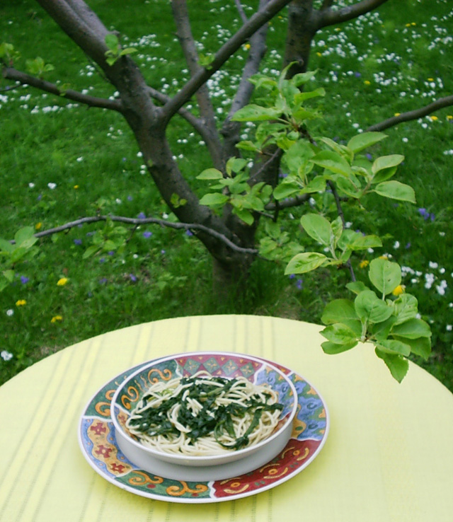 Notes Gemma Forliano noted to friend, Mary Melfi (The lady who took the photo and is writing this text) that her late grandmother who grew up in Terlizzi, Puglia often went out into the woods to pick chicoria, dandelions. Back then, in the 1930s, her grandmother, as well as other residents in her town, did so because they were poor and were on the look out for free food. Of all the foods in the world that can be considered to be "poor people's food" surely chicoria has to top the list. The obvious reason for this is that chicoria grows wild while other foods which are also thought of as poor people's foods (e.g., beans) have to be grown and that, of course, incurs cost. In Puglia home cooks came up with a variety of recipes for cooking chicoria, but it seems to be (Or, it seems to me anyway) that in some other regions of Italy (e.g. Molise) chicoria was so looked down upon that home cooks avoided its use. My own mother was shocked to learn that people in Puglia made pasta with chicoria. When I told her of how my friend's grandmother prepared chicoria she said and I quote, "Was she so poor that she had to eat chicoria with pasta?" I assured her that while the dish may have originally been made to save money, it is nonetheless, quite flavorful. It's hard to believe that chicoria, dandelions, North America's most hated vegetation, can, if nicely cooked, be pleasant to the palate (Actually, it tastes just like spinach -- no better, no worse.). In fact, Gemma Forliano whose grandmother's recipe is presented in this entry, loves chicoria so much that she prepares them any and every which way she can. From April to late May she digs out her dandelions from her backyard (which, incidentally, is located in a prestigious area in Montreal) and makes very good use of them. |