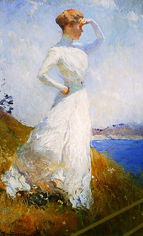 Directions "Boil the spaghetti as above [Boil three-quarters of a pound of fresh spaghetti in plenty of salted water for three-quarters of an hour, adding an onion with two or three cloves stuck into it and half an ounce of butter. Drain], add one pint of Tomato sauce (see Tomato Sauces) (or conserve) and a quarter of a pound of grated cheese, add a little pepper and grated nutmeg, and cook for ten minutes, tossing well. Serve hot with some grated Parmesan cheese separate." Notes This recipe was taken from "Leaves from our Tuscan Kitchen" by Ann Janet Ross. The book was published by JM Dent & Co. in 1900 (London). For the complete cookbook see www.archive.org.... Image: Frank Benson, Jour de soleil, 1909. |