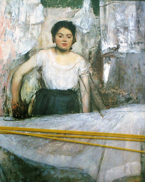 Notes The recipe in this entry was taken from "The Pleasures of Italian Cooking" by Romeo Salta, with an Introduction by Myra Waldo, photographs by Roberto Caramico, assisted by John Ciofalo. The book was published in New York by The MacMillan Company in 1962. For the complete copyright-free cook book visit www.archive.org....Image [behind spaghetti] -- Edgar Degas: La Repasseuse, 1869. |