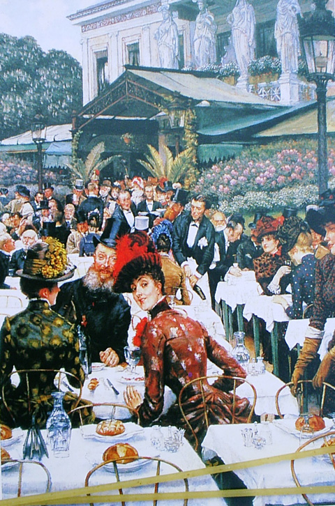 This recipe was first published in the cookbook entitled, "Specialita Culinarie Italiane 137 Tested Recipes of Famous Italian Foods, Sold for the benefit of North Bennet's Industrial Training & Social Service Work in the North End of Boston." It was published in Boston, Ma. in 1937. The entire cookbook is available on line for free at "pds.lib.harvard.edu/pds/view." Image -- James Tissot: Les peintres et leurs femmes, around 1885. |