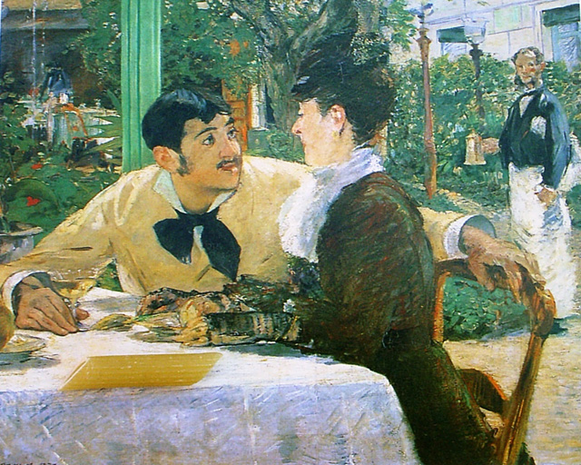 Notes The recipe in this entry was taken from "The Pleasures of Italian Cooking" by Romeo Salta, with an Introduction by Myra Waldo, photographs by Roberto Caramico, assisted by John Ciofalo. The book was published in New York by The MacMillan Company in 1962. For the complete copyright-free cook book visit www.archive.org.... Image -- Edouard Manet: Chez le Pere Lathuille, 1879. |