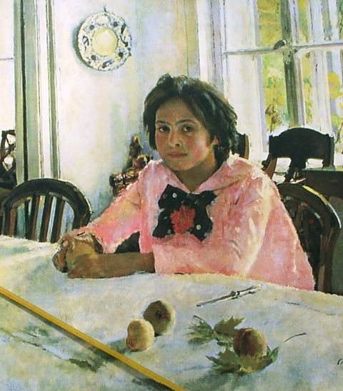 Directions Fry half an onion slightly in butter, and as soon as it is coloured add a puree of two big cooked tomatoes. Then boil quarter of a pound of macaroni separately, drain it and put it in a deep fireproof dish, add the tomato puree and three dessertspoonfuls of grated Parmesan and Cheddar mixed, and cook gently for a quarter of an hour before serving. This dish may be made with vermicelli, spaghetti, or any other Italian pasta Notes This recipe (# 182) was taken from "The Cook's Decameron: a Study in Taste, containing over two hundred recipes for Italian dishes," by Mrs. W.G. Waters. It was published by William Heineman in 1920. For the entire cookbook see www.archive.org. Image: Valentin Alexandrovitch Serove: Jeune fille aux peches, 1887. |