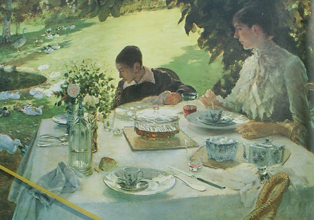 This recipe was taken from "The Complete Italian Cook Book: La Cucina" by Rose L. Sorce. It was published by Grosset & Dunlap in 1953. For the entire copyright-free cookbook see www.archive.org.... Image -- Giuseppe De Nittis: Petit dejeune au jardin, around 1884. |
