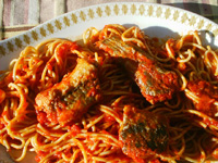 Toss with tomato sauce. Add stewed eel to the individual plates.