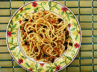 Notes My maternal grandmother was a devotee of Saint Joseph (She believed the Saint himself once saved her life). So, this recipe is rather special to me. Even though Maccherone San Giuseppe is not a dessert, it's a main meal, still, there is honey in it, so the dish is rather sweet. In Italy olive oil was used for this recipe, but my mother prefers vegetable oil for this dish, and that's how it was always done at her house, and that's how I do it. Apparently, in Italy, spaghetti was generally reserved for very special events. The reason for this was simple -- spaghetti were difficult to do as few people (if any) in the countryside owned pasta makers. Each spaghetti strand was cut individually (unlike the other thin pastas where the pasta sheets were folded over to speed up the process of cutting the home-made pasta). Anyway, because spaghetti were reserved for special events, the dough that was used generally contained eggs. However, this was not the case on the Feast Day of Saint Joseph. Prior to World War II the dough used to make the spaghetti for Saint Joseph did not contain eggs. On this feast day large groups of people got together, so making an egg-based dough would simply have been too expensive for most households. Also, it would have taken too much time. Most cooks bought the spaghetti for Saint Joseph at a neighborhood shop (The store-bought spaghetti did not contain eggs). Devotees of Saint Joseph would often give the spaghetti they made to the poor who came knocking on their doors for an offering. Some of the poor came round with cloth napkins on which the spaghetti was placed. Others were so poor that they did not have napkins, they placed the "maccheroni di San Giuseppe con la mollica" offered in their aprons. The poorest of the poor went around collecting the spaghetti from house to house and then placed what they collected on their balconies. Back then there were no fridges, so the balconies were used as a kind of fridge in the winter and early spring. So the poor on the Feast Day of Saint Joseph managed to collect enough food for a week. .... "Maccheroni di San Giuseppe con la mollica" was only done at my maternal grandmother's on St. Joseph's feast day. However, my Zia Rosina tells me, that in other households in my hometown, Casacalenda, this dish was actually served three times a year: on the Feast Day of Saint Joseph, on Christmas Eve, and on Holy Friday.... One more thing every town in every province in every region had their own St. Joseph's dishes. In Guardaliferia, a nearby town, their Maccherone di San Giuseppe was served in tomato sauce. So never assume that any one town's way of doing something is the traditional way of doing things in Italy. It's only traditional to that town -- in fact, it may not even be specific to all the households in the town (Even cousins born in the same town will argue that this or that dish was only done for Christmas and not for Christmas and St. Joseph (or whatever) because their parents only did it for one specific holiday etc. So best not to fight, just accept the fact that in the Italian countryside each household had their own individual way of doing things. Photo: Mary Melfi. |