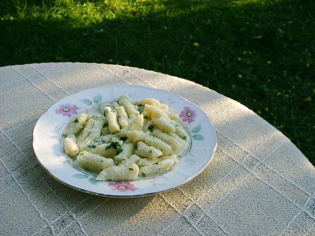 My sister has been making these ricotta gnocchi for over two decades. A friend of a friend gave her the recipe years ago. I have no idea where this type of ricotta gnocchi was originally made. Obviously, if the gnocchi are tossed with a white cream sauce then the dish has a Northern Italian flavor and if one tosses the gnocchi with red sauce than it has a Southern one. All I am absolutely sure of is that these ricotta gnocchi are incredibly easy to make, and they're nutritious as well -- a winning combination. The fact that they are delicious is a bonus, I suppose (Or should it be the other way round -- first taste, then nutrition????). Whichever way, these home-made gnocchi are worth the time and effort. Photo: by the contributor. |