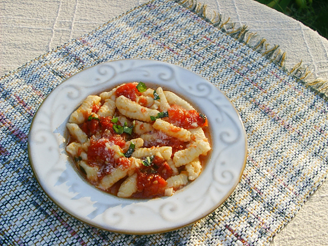 Any favorite tomato sauce can be used for this recipe. If the gnocchi come out well, they'll make a wonderful meal (There is no reason why the gnocchi shouldn't come out well, as this recipe is easy to do.). Unlike store-bought frozen ravioli which are generally quite good, store-bought gnocchi are simply not good enough (in my opinion). Store-bought gnocchi may look good, but they're generally tasteless, and don't have much nutritional value. Home-made ricotta gnocchi are not only good for you, they actually please the pallet like nothing else can. Photo: Mary Melfi. |
